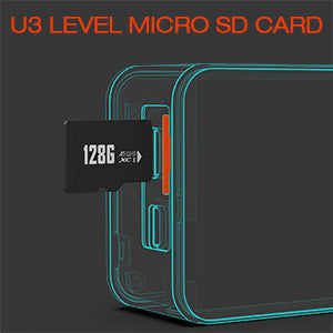 1.U3 high speed Micro SD cardsup to a capacity of 128GB are supported. SanDisk Extreme SD UHS-I Micro SD Card (U3) is recommended. 2. Micro SD card is Not Included in the package. 3. Pleaseformatthe Micro SD card before using. 4. Please fully charge the camera before the first time use. 5.Bare machine is not waterproof, please use the attached waterproof case to dive, up to 100FT underwater.