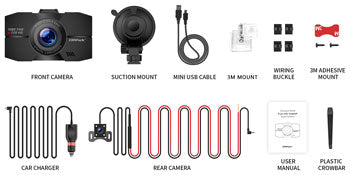 Mount your DC02 front camera to the windshield with the included suction mount; Plug in the power cable and adjust angle; Automatically start working when you start your car.