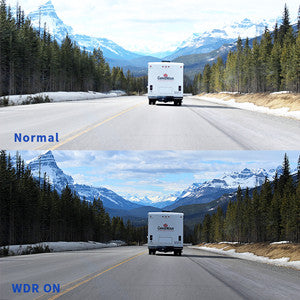 The car camera comes with a special WDR(Wide Dynamic Range)system that automatically adjusts the video brightness to achieve a balance in a low light environment, especially cloudy or nightscape