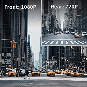 Dual dash cam features 1080P Full HD front camera and 720P rear camera, captures driving moment clearly and vividly, and provide critical video evidence when an incident happens.