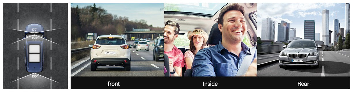 Adhesive mount and suction cup mount are available in the package. You can choose what you prefer. A flexible rotatable three-camera lens offers more security and captures more instant scenery even driving.